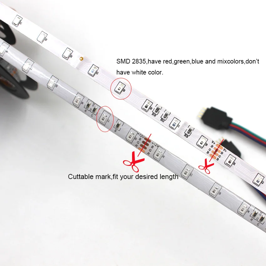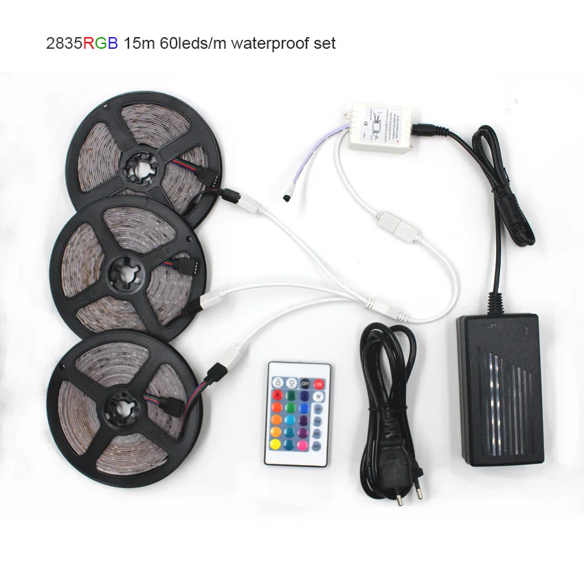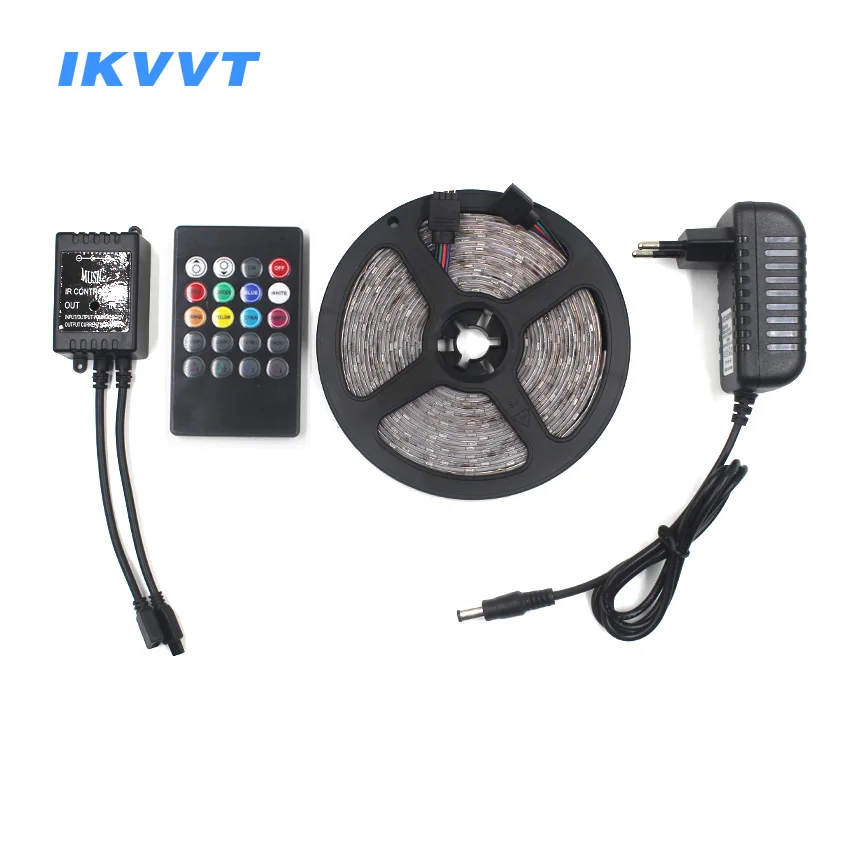 IKVVT RGB led strip light 5M 10M 15M SMD 2835 RGB Diode Tape led Ribbon with 24key Music Remote Con