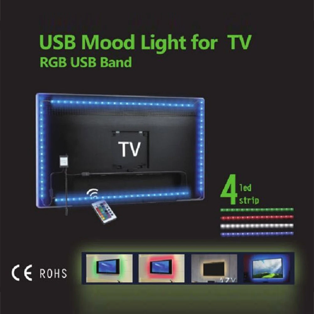 LED Strip Light TV Background W/Controller 4Pcs Decor Home USB Mood String